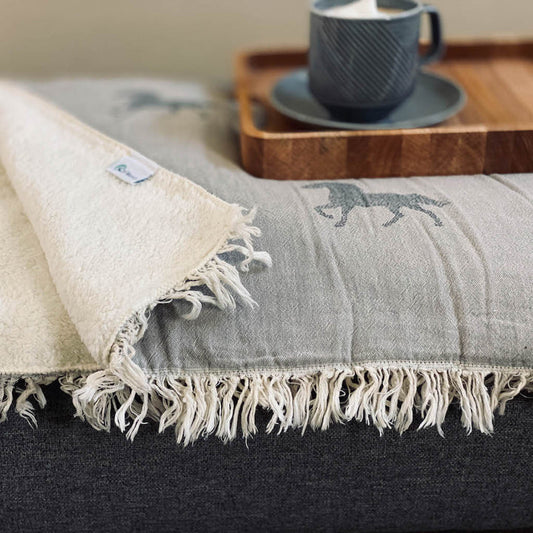 Horse Print Woven Fringed Throw in Light Grey